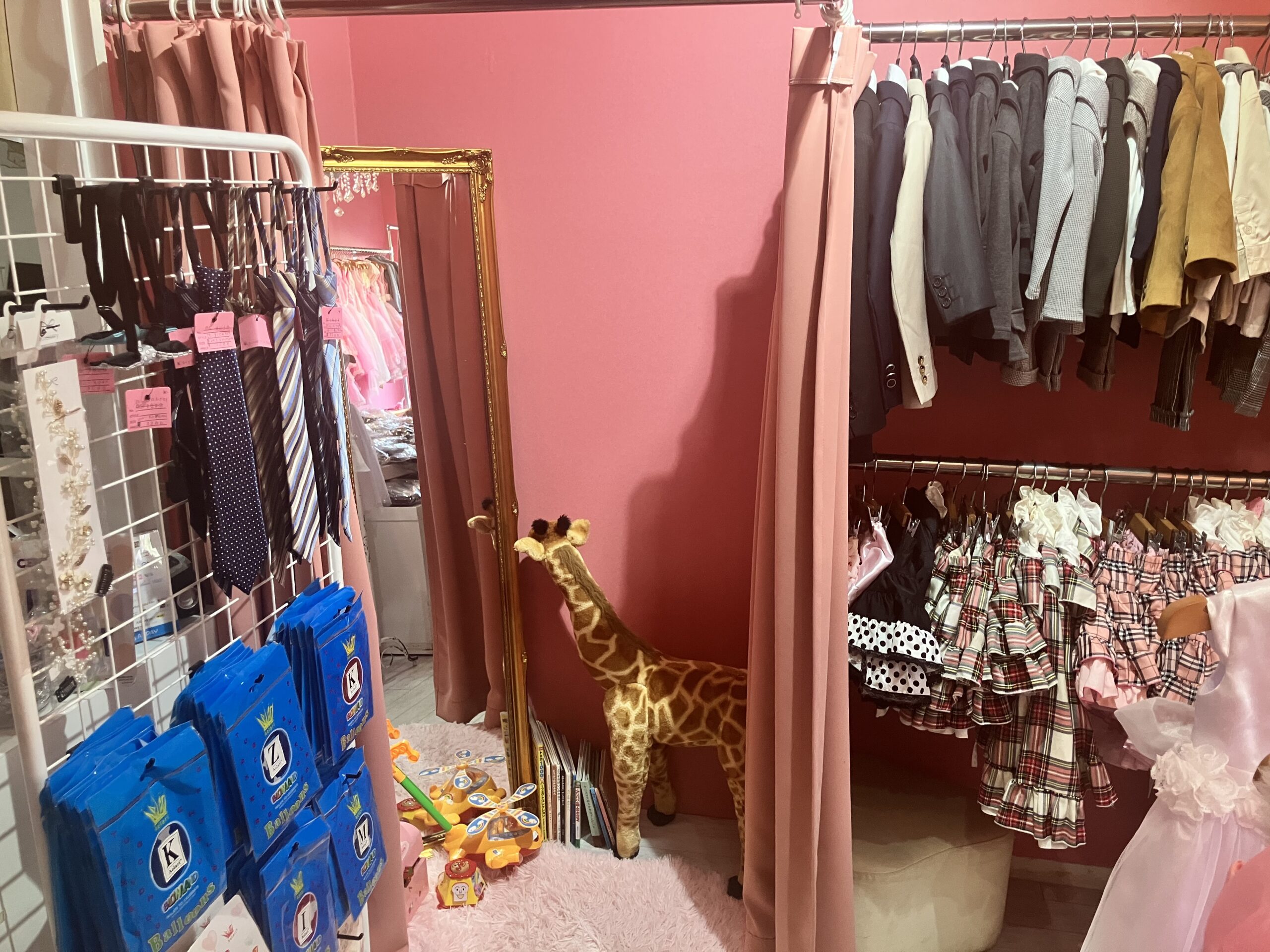 また、試着スペース横には男の子のスーツやネクタイなどの小物もあるので要Check!👔